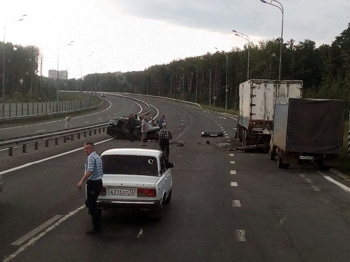 Страшная авария с участием легковушки и грузовика произошла утром 14 июля около 8:30 при подъезде к Президентскому мосту у пункта весового контроля в Ульяновске.