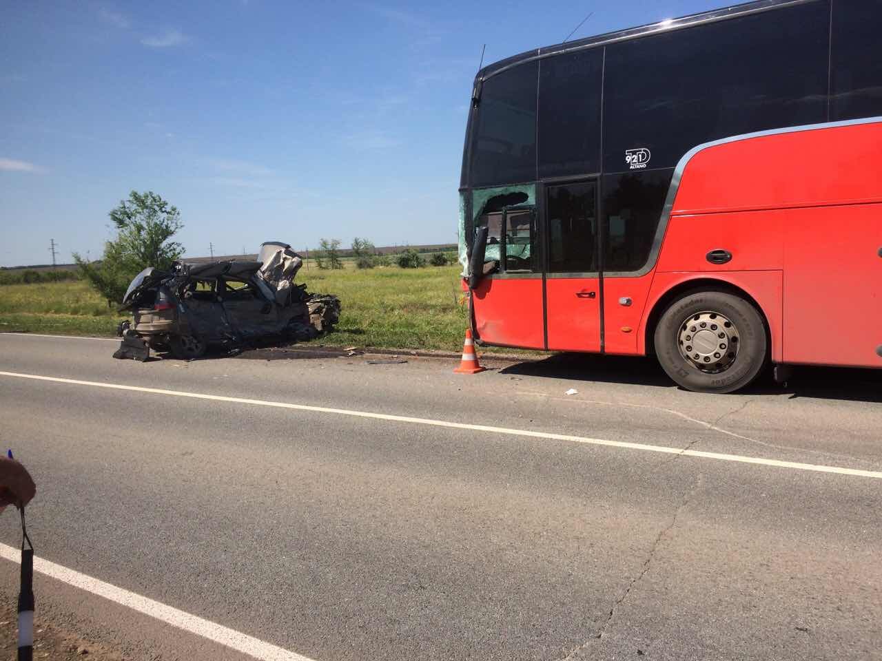 В результате аварии водитель легковушки погиб. Водитель и пассажиры автобуса не пострадали.