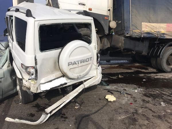 По предварительным данным, у грузового автомобиля МАЗ отказали тормоза. Водитель потерял управление и столкнулся с ехавшими впереди машинами: большегрузом, УАЗ «Патриот», ВАЗ-2111, а также патрульным автомобилем ДПС.