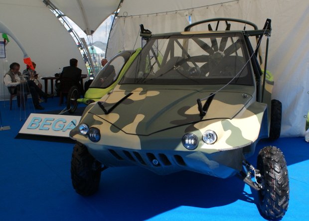 Научно-производственное объединение «Авиационно-космические технологии» и компания «Электроавтоматика» представили трехсредный внедорожник «Тритон». Машина имеет в длину 3 метра, в ширину — 1,8 метра, а в высоту 2 метра и способна перевозить до двух человек. Максимальная взлетная масса внедорожника равна 500 килограммов. «Тритон» оснащен бензиновым двигателем мощностью в 120 лошадиных сил и двумя электрическими моторами мощностью по 3 кВт, что позволяет ему разгоняться на суше до скорости в 100 км/ч. Запах хода внедорожника на земле равен 100 км, на воде – 400 км.