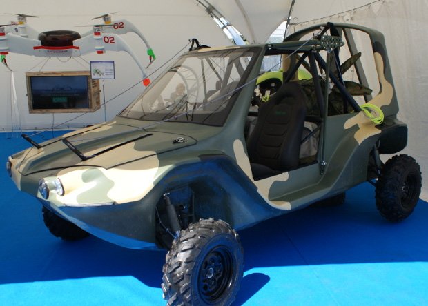 На авиасалоне МАКС-2017 был представлен прототип трехсредного внедорожника «Тритон». Транспортное средство может ездить, плавать и летать.