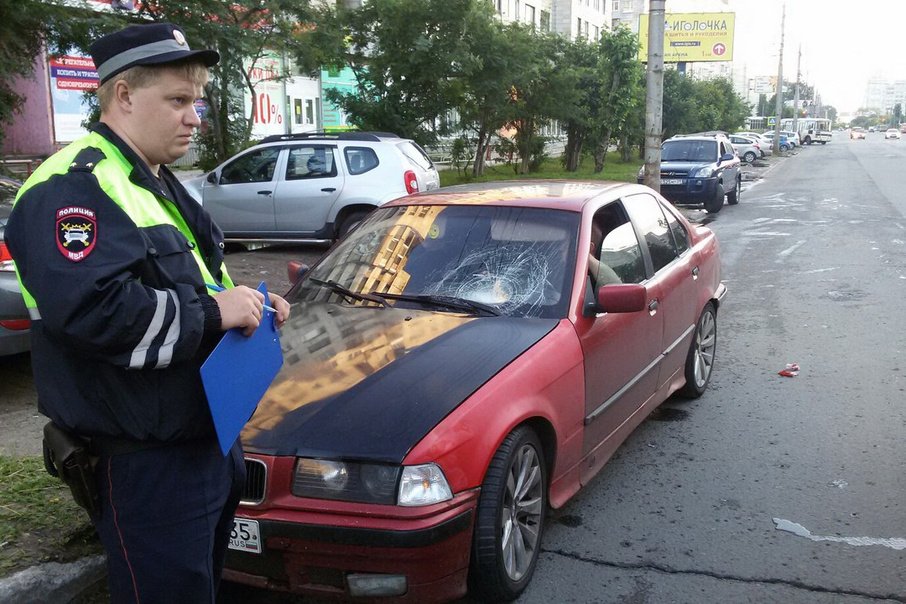 Судя по фото, в результате столкновения женщину подбросило на лобовое стекло и удар был достаточно сильным.