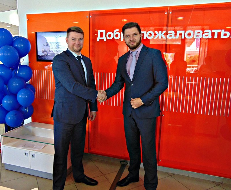 Директор по продажам автомобилей Форд Назаров Игорь и Старший менеджер отдела закупок Авилон Трейд Елшин Денис (на фото) торжественно пожали друг другу руки.