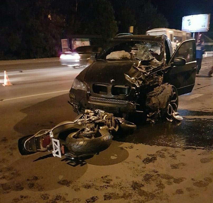 По сообщениям очевидцев, водитель мотоцикла Aprilia Mana 850 потерял управление и на скорости врезался в автомобиль BMW X5, которым управлял 33-летний водитель. От удара байкеру оторвало ногу, а его самого отбросило на несколько метров от места столкновения.