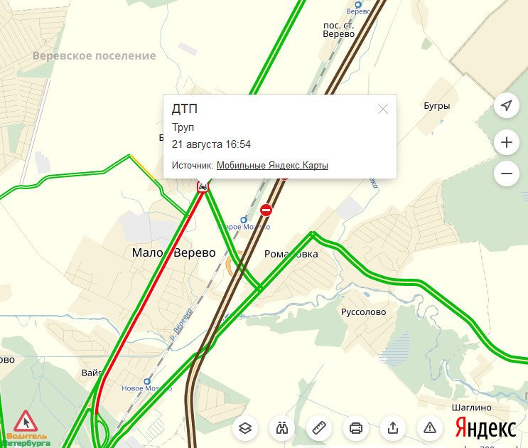 Смертельная авария произошла вечером, 21 августа, на Киевском шоссе в районе деревни Верево в Гатчинском районе Ленинградской области. При столкновении автомобиля и мотоцикла погибли два человека.