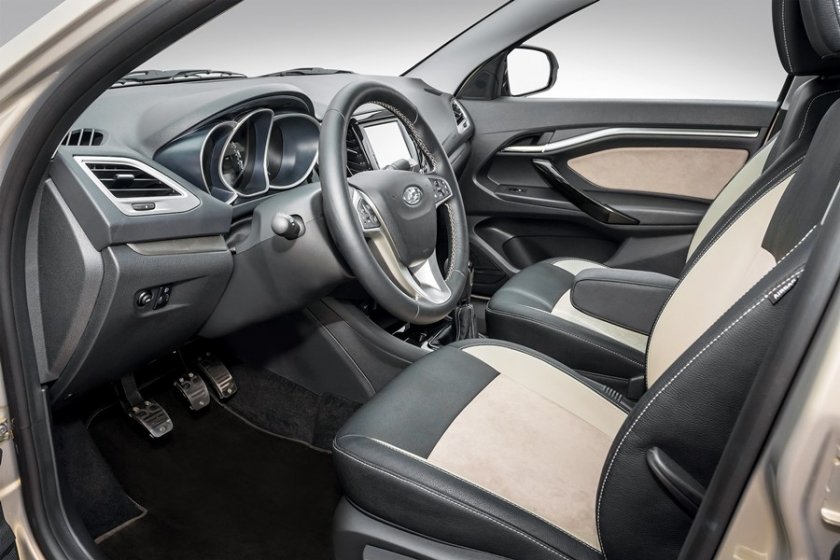 Если сравнивать Luxe и Exclusive, то у новинки есть следующие интерьерные отличия: использована комбинированная обивка сидений - экокожа/алькантара, кожей отделан руль,в наличиях текстильные коврики и накладки на педали плюс LED-подсветка интерьера. Кроме того усилена тонировка задних стекол и присутствует декоративная насадка выпускной трубы.