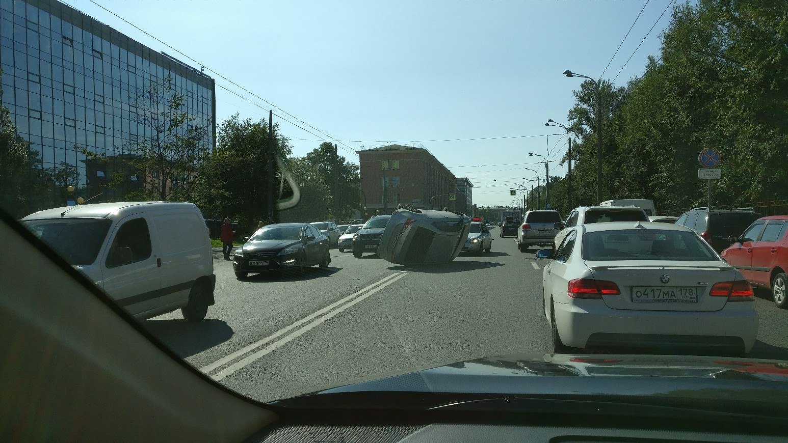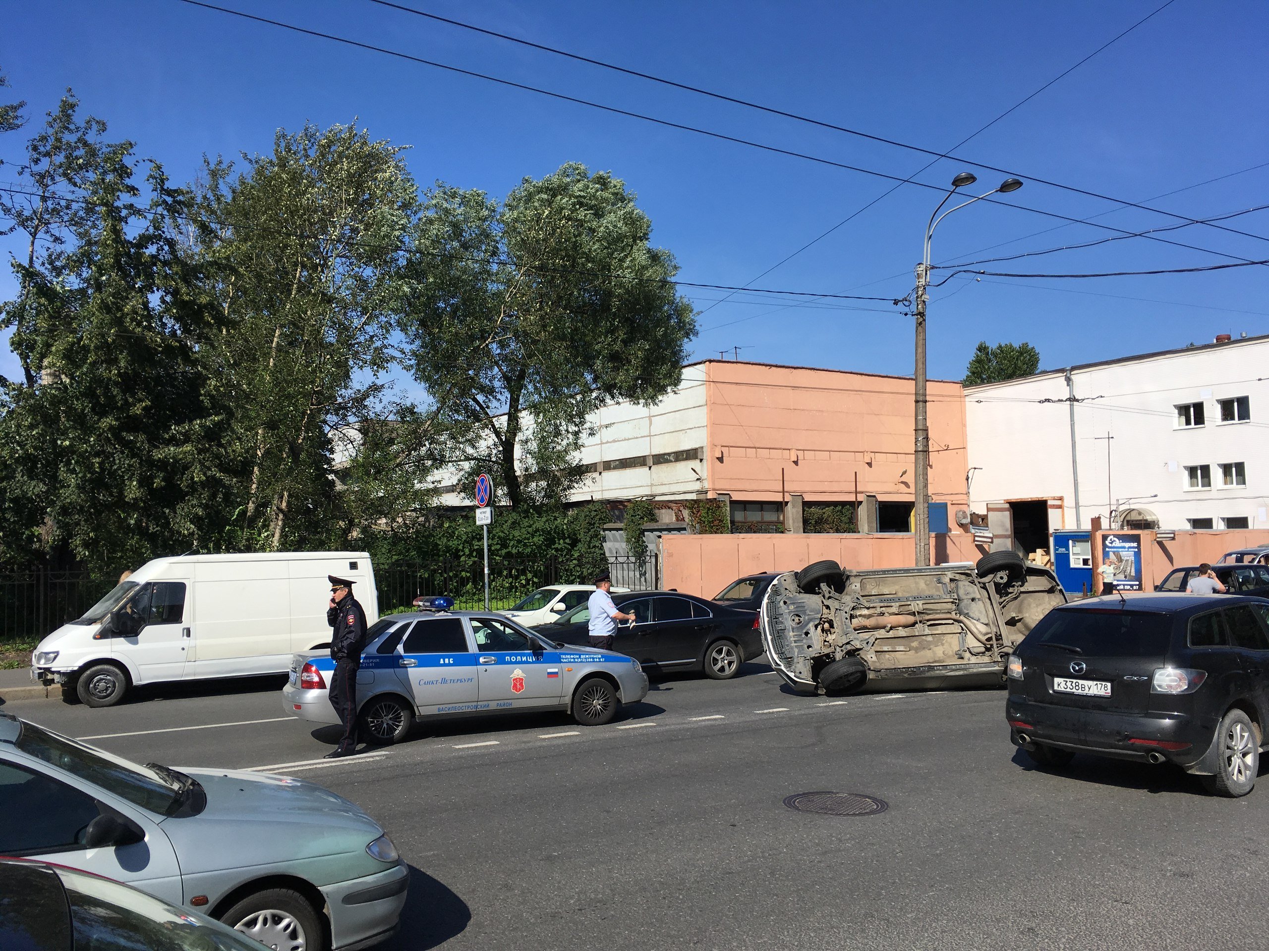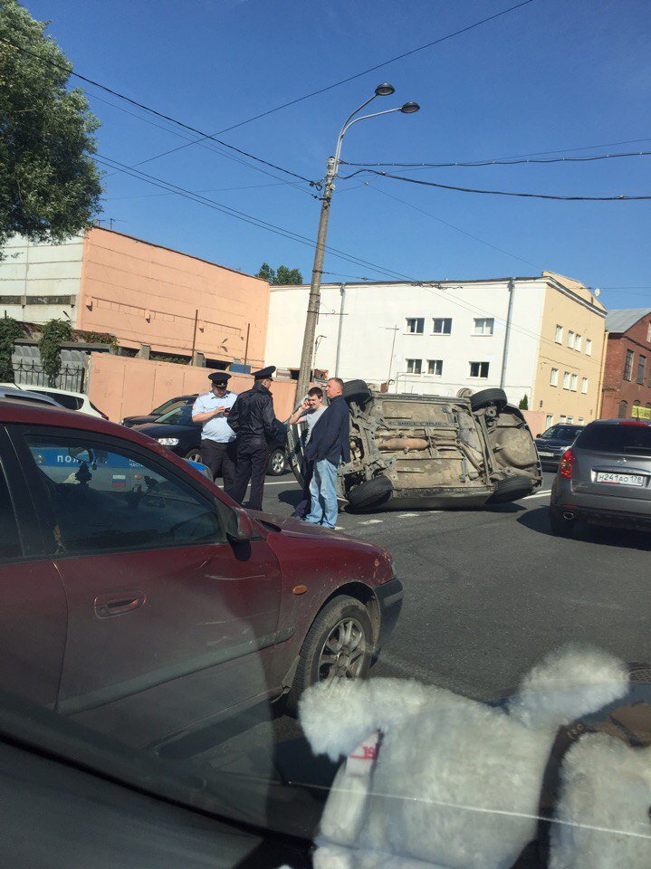 Авария с опрокинувшейся иномаркой произошла сегодня, 30 августа, на Малом проспекте Васильевского острова в Петербурге.