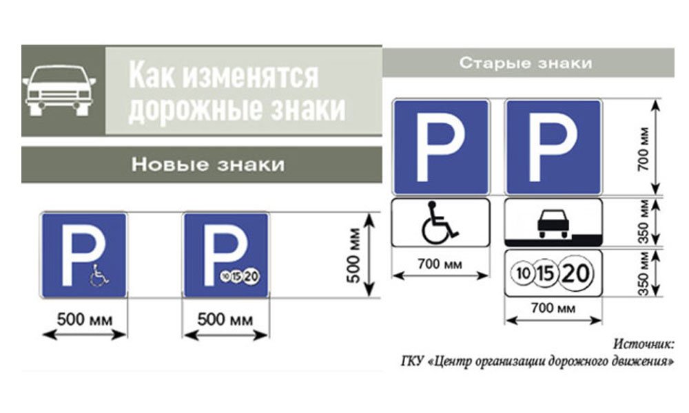В Москве, например, были уменьшены с размера 70х70 до 50х50 и даже до 40х40 знаки "Парковка" и "Остановка запрещена". При этом проводившие эксперимент специалисты отметили, что маленькие знаки воспринимались участниками движения не хуже, чем большие, но при этом улучшалась обзорность, что можно считать плюсом с точки зрения безопасности дорожного движения.