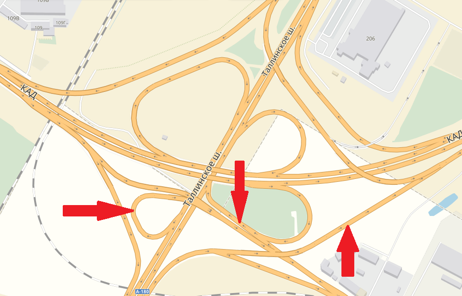 В период с 25 сентября по 10 октября 2017 года в Санкт-Петербурге будут полностью перекрыты для движения автомобильного транспорта три съезда на пересечении с Таллинским шоссе (А-180 «Нарва»).
