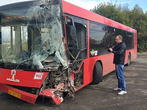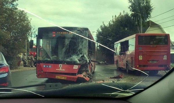 Два пассажирских автобуса столкнулись сегодня, 26 сентября, в 13:15 на улице Боевой в Кировском районе Казани.
