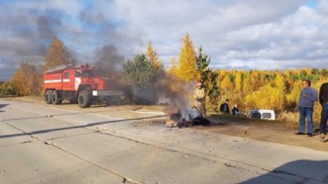 По имеющимся данным, на дороге столкнулись мотоцикл под управлением 15-ленего подростка и автомобиль УАЗ, за рулем которого находился сотрудник ГИБДД. От удара УАЗ съехал в кювет, а мотоцикл загорелся.