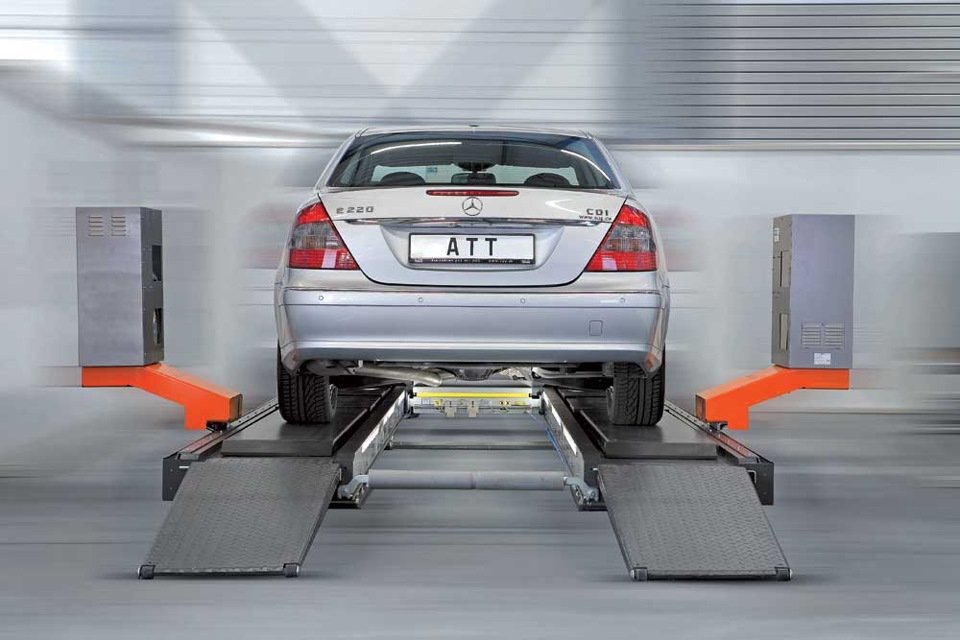 Начнем с конца. Самыми новейшими и современными считаются бесконтактные стенды. Название говорит само за себя - в данном случае имеется ввиду, что для проведения измерений не требуется никаких дополнительных настроек и установки датчиков на колеса. Специальные дистанционные датчики двигаются вдоль автомобиля, который предварительно «загоняется» на стенд, а затем все данные выводятся на монитор.