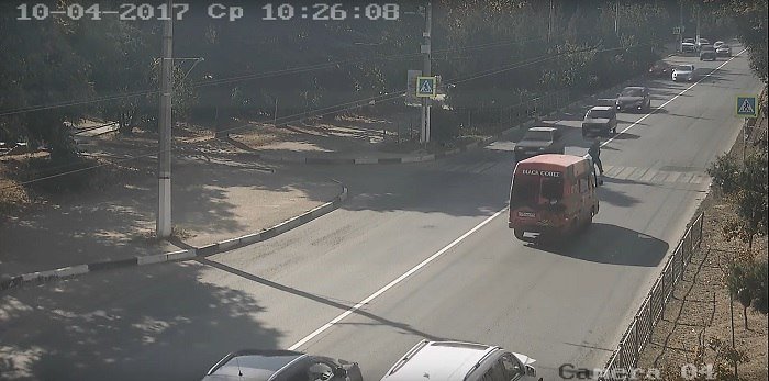 На видео видно, как женщину, уверенно переходящую проезжую часть по нерегулируемому пешеходному переходу сбивает микроавтобус Mercedes. После аварии водитель с места происшествия скрылся, его личность уже установлена.