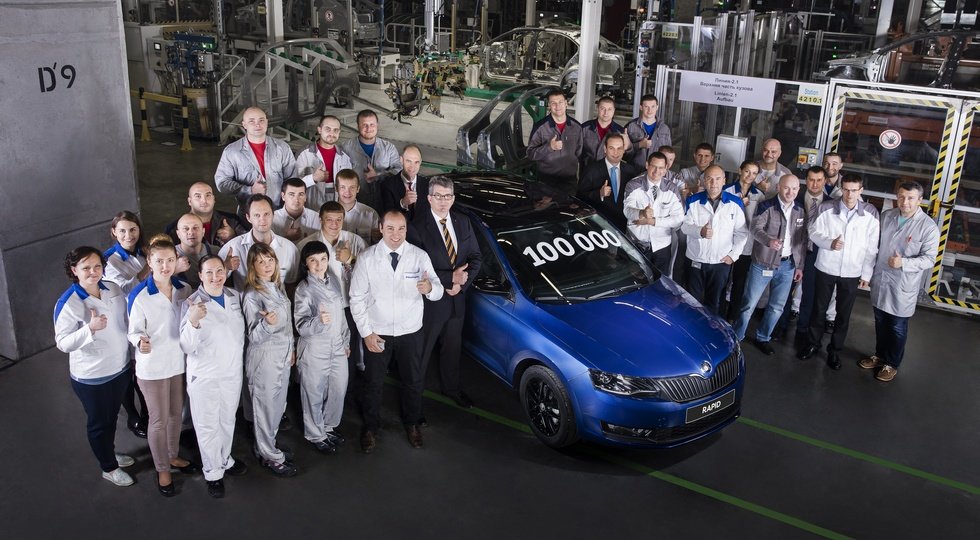 С конвейера завода Volkswagen Group Rus в Калуге сошел 100-тысячный лифтбек Skoda Rapid.