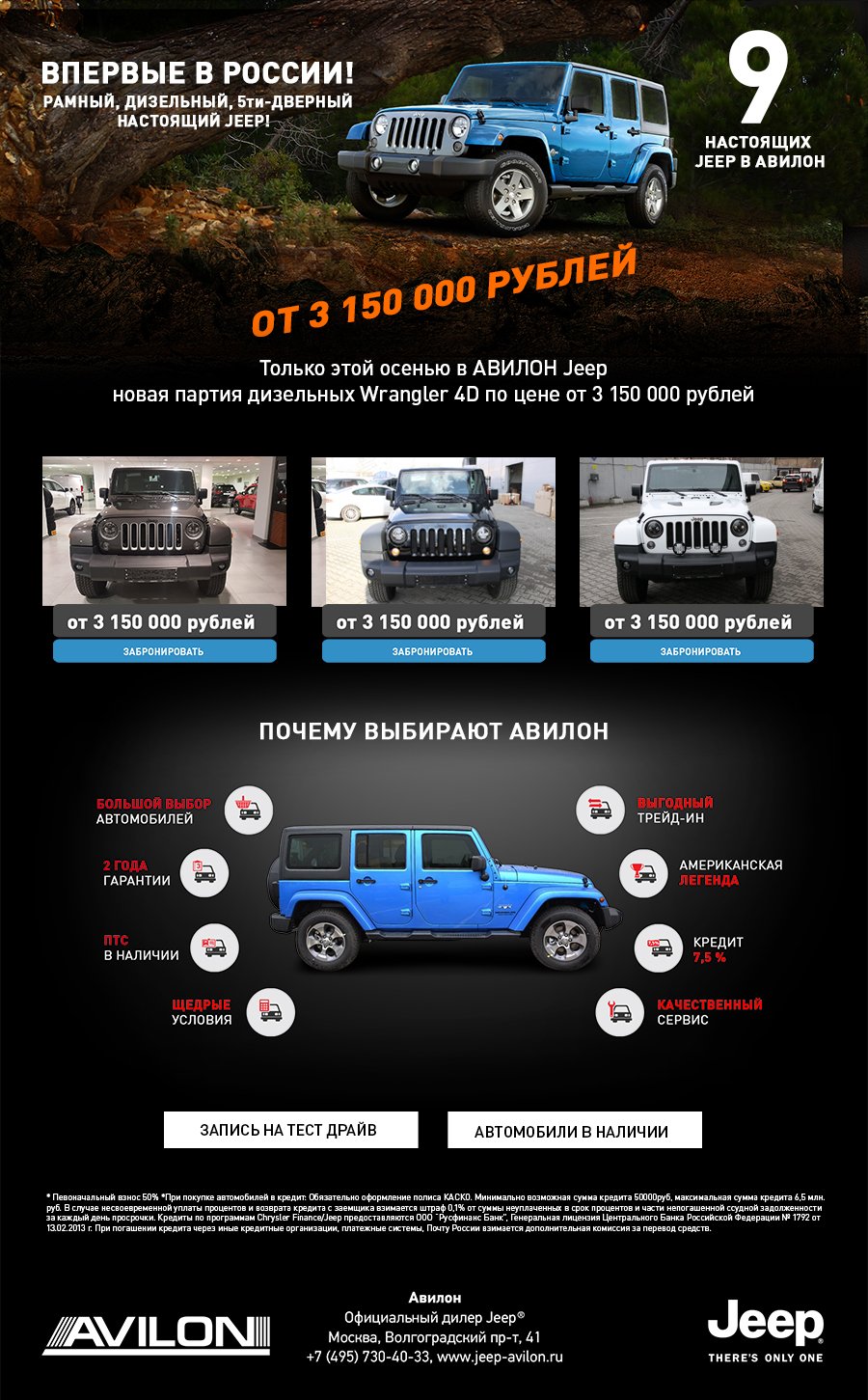 Только 9 настоящих Jeep Wrangler в АВИЛОН! www.jeep-avilon.ru/prices/jeep_wrangler/