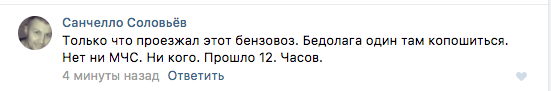 «Только что проезжал этот бензовоз. Бедолага один там копошиться. Нет ни МЧС. Ни кого. Прошло 12. Часов.» - пишет пользователь ВК-группы «Шексна | OnLine».