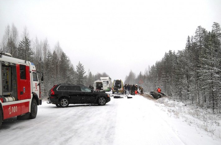 Три человека стали жертвами автомобильной аварии, произошедшей сегодня, 29 октября, в 14:20 на 205-м километре дороги «Кочкома – Госграница» недалеко от Костомукши.