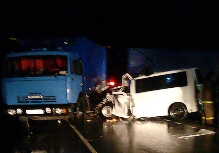По предварительной информации, столкнулись микроавтобус Volkswagen Caravelle и грузовой автомобиль «КамАЗ». СМИ со ссылкой на пресс-службу ГУ МВД региона сообщают, что виновником аварии стал водитель грузовика, 28-летний молодой человек, который не уступил дорогу автобусу.