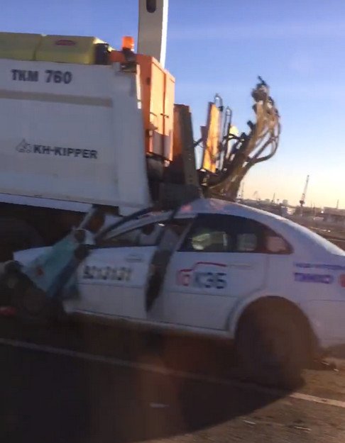 «Проезжала сразу после аварии, ГАИ только одна машина приехала ещё. Выглядит жутко... Водитель лежал головой в лобовое стекло . Но знаки о необходимости перестроения на табло светятся за несколько километров. Я сразу перестроилась: машин мало. А некоторые при пустой дороге до последнего несутся, не учитывая сегодняшний гололед. Мне кажется, что тоже не успел перестроиться, т.к. влетел капотом с пассажирской стороны под уборочную технику. Солнце, кстати, не в глаза там, а за спиной».