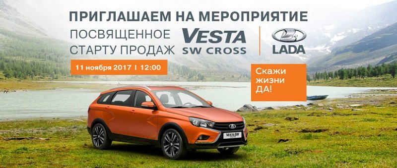11 ноября в 12 часов дня приходите в дилерский центр LADA АВТОРУСЬ и скажите ДА – новой LADA Vesta SW Cross! Вас будет ждать торжественная церемония старта продаж долгожданной новинки от LADA, где вы сможете получить незабываемые впечатления и яркие эмоции от знакомства с новой LADA Vesta SW Cross.