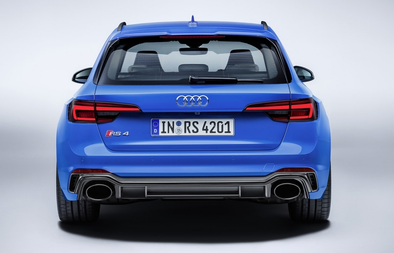 Внешние отличия Audi RS 4 Avant - впереди установлена фирменная радиаторная решетка Singleframe с сотовой структурой. Задняя часть RS отличается фирменным диффузором и овальными выхлопными трубами. Плюс к этому на крыше установлен спойлер RS.