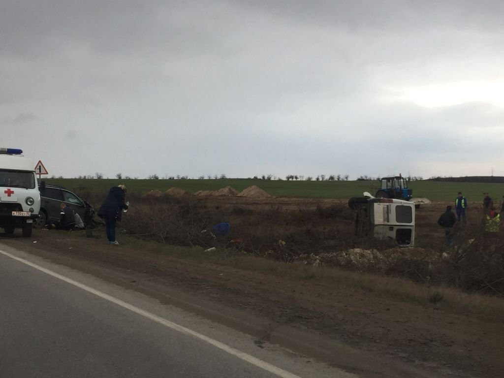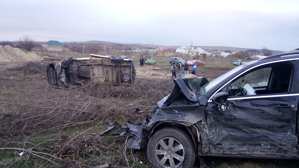 По имеющимся данным, 30-летний водитель микроавтобуса Peugeot Boxer, двигаясь со стороны Симферополя в направлении Феодосии, выехал на полосу встречного движения, но потерял управление и врезался в обгоняемый автомобиль Chevrolet Niva. После этого Peugeot столкнулся со встречным Volkswagen Touareg и затем опрокинулся в кювет.