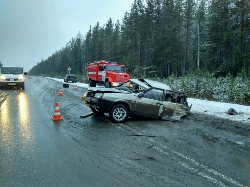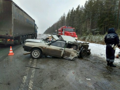 По имеющимся данным, 34-летняя женщина-водитель автомобиля ВАЗ-21099 не справилась с управлением и выехала на встречную полосу, где произошло столкновение с КамАЗом под управлением 46-летнего мужчины.