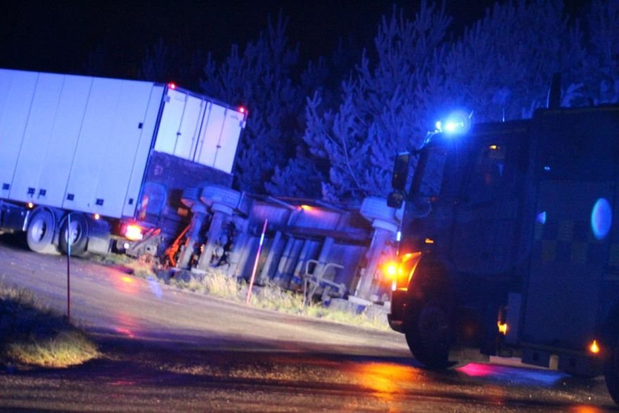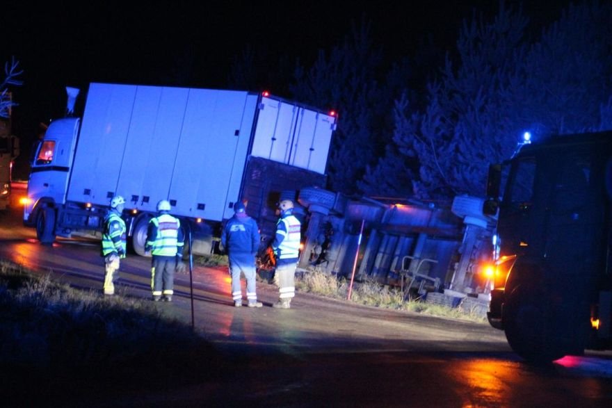 Как сообщает шведское издание SVT, водитель не справился с управлением и прицеп, накренившись, утянул грузовик в кювет. При этом известно так же, что машина ехала наследующую базу - грузить ещё и картофель.