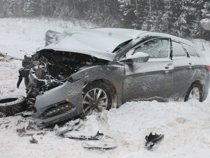 По имеющимся данным, 34-летняя женщина-водитель автомобиля Renault Logan не справилась с управлением на заснеженной трассе и выехала на полосу встречного движения, где столкнулась с Hyundai под управлением 35-летнего мужчины.