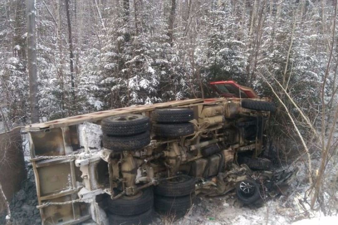 По имеющимся данным, водитель легковой иномарки выехал на полосу встречного движения и врезался в грузовой автомобиль, который после столкновения опрокинулся на легковушку.