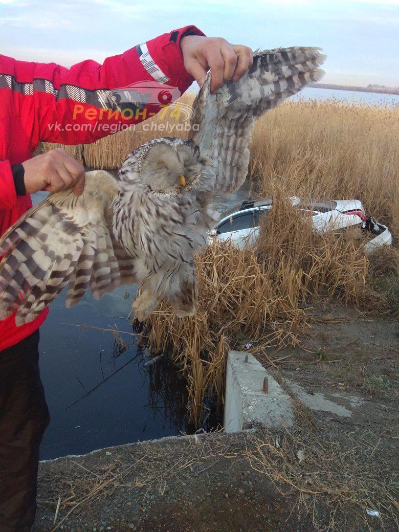 Сова против "Ягуара": под Челябинском птицу обвиняют в ДТП с утонувшим автомобилем