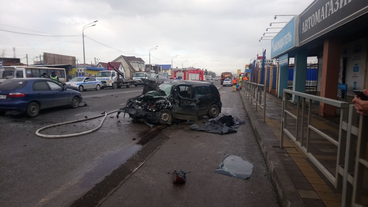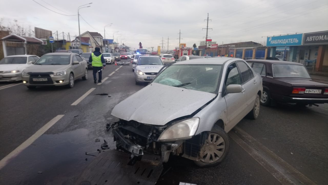 По предварительным данным, 24-летний житель Динского района за рулем автомобиля Mitsubishi Lancer, двигаясь со стороны улицы Автомобильной в строну Солнечной, при перестроении из ряда в ряд не справился с управлением на мокрой дороге. Машину занесло, и она выехала на полосу встречного движения, где произошло столкновение с Hyundai Getz, за рулем которого находился 58-летний мужчина. Водителя Mitsubishi от удара выбросило из машины на едущий за Hyundai автомобиль Chevrolet Lanos, за рулем которого был 31-летний мужчина