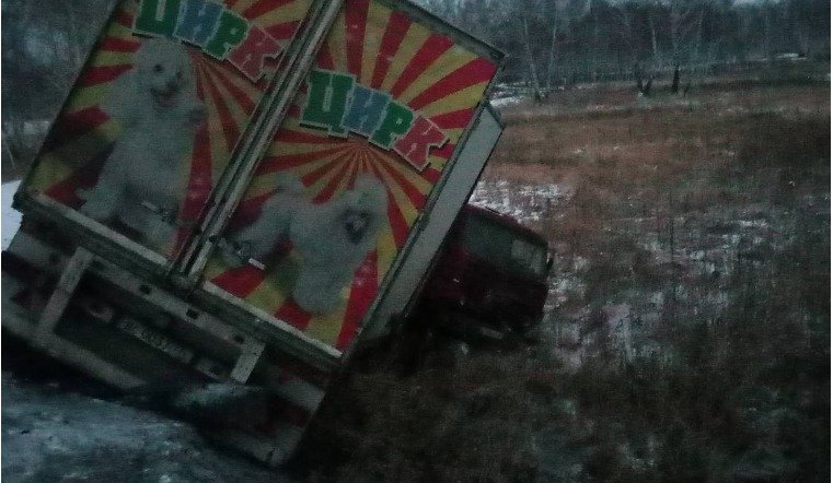 Грузовик, перевозивший цирковых животных, попал в аварию накануне, 4 декабря, в 15:50 дня на 51 км дороги Челябинск – Новосибирск.
