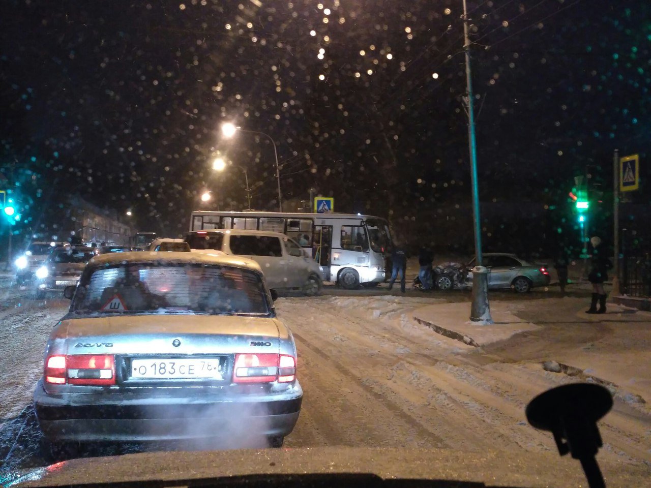 Авария с пострадавшими произошла утром 8 декабря в 8:30 на перекрестке Конюшенной и Средней улиц в Пушкине – там столкнулись автобус и легковушка.