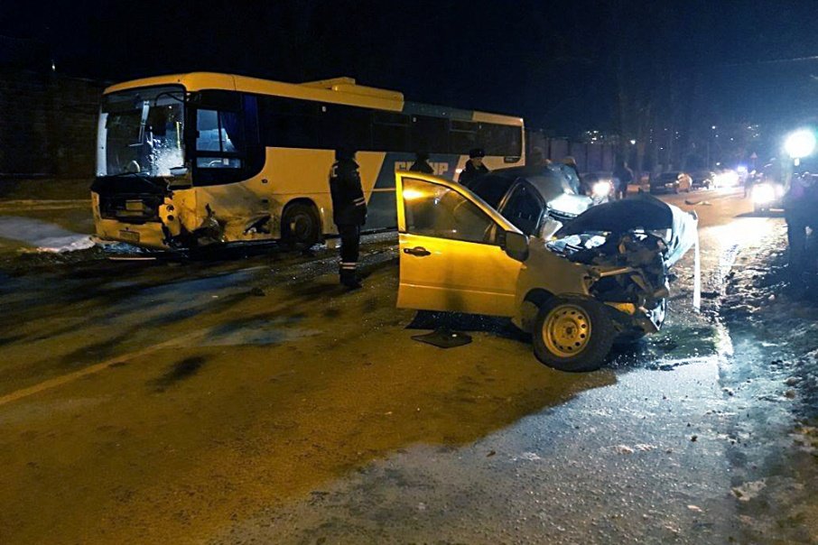 По имеющимся данным, 44-летний водитель автомобиля «Лада Гранта» не справился с управлением и выехал на полосу встречного движения, где столкнулся с автобусом «НефАЗ».