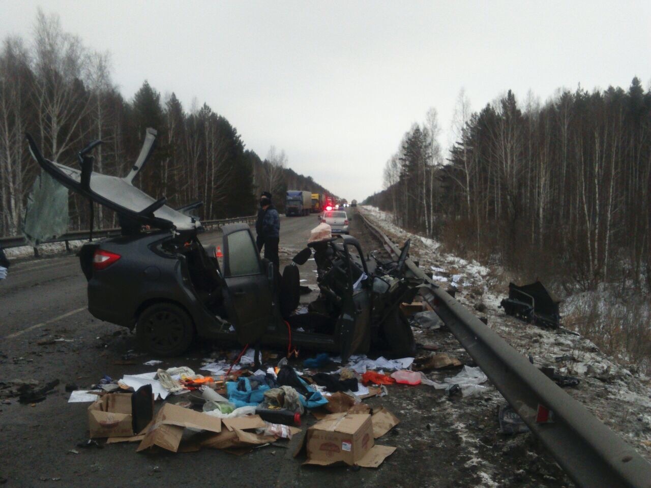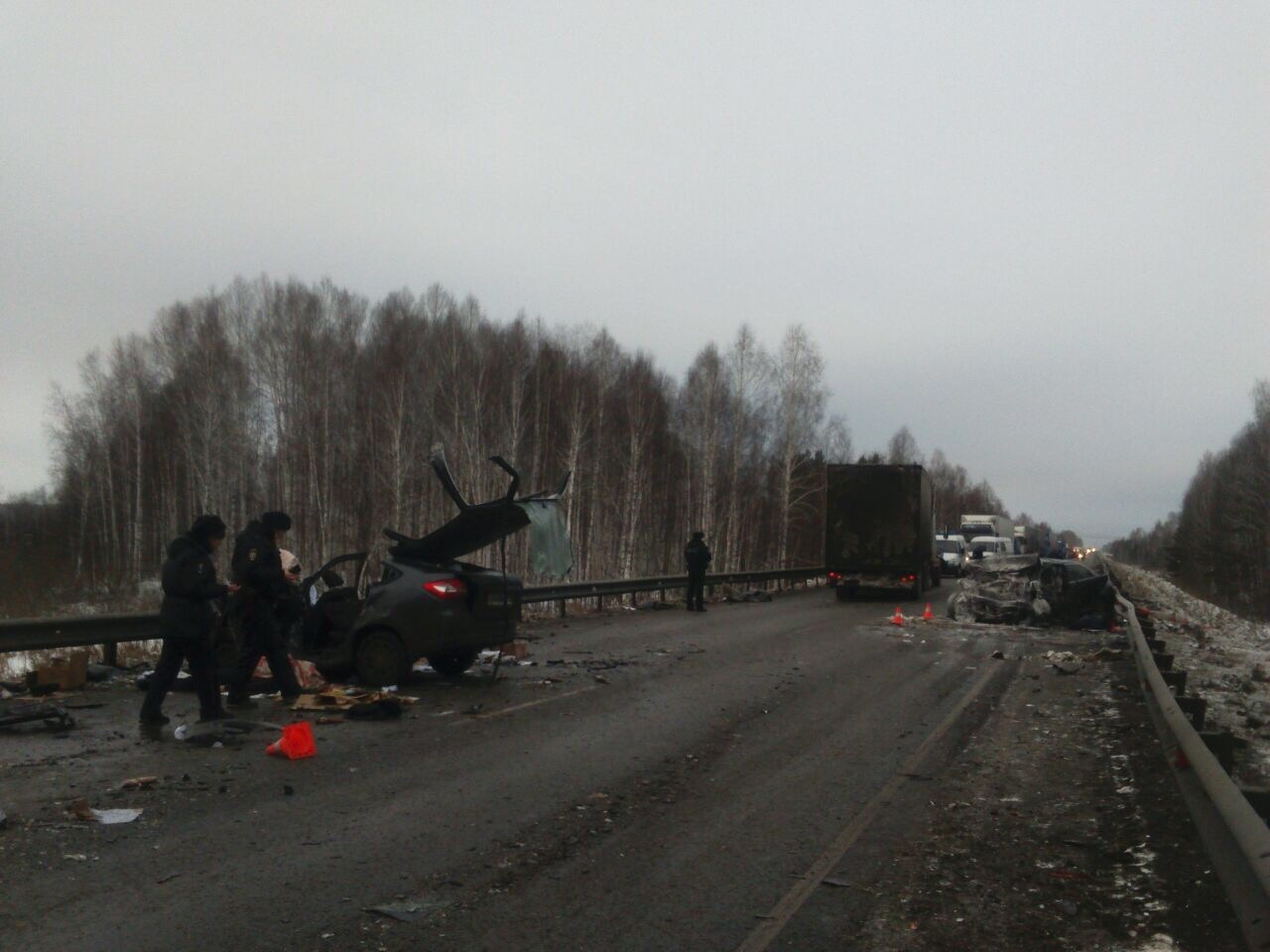 Страшная авария с двумя погибшими произошла сегодня, 22 декабря, около 8:40 на 65-м километре Тюменского тракта в районе поселка Белоярского в Свердловской области.