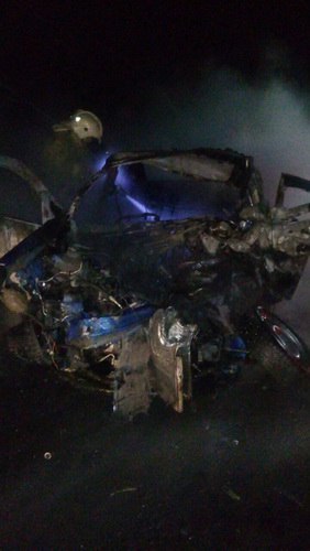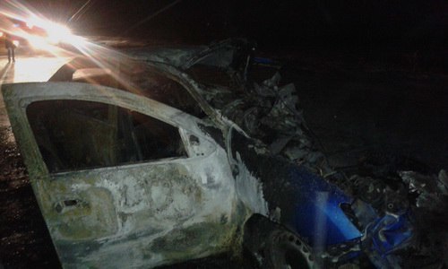 По имеющимся данным, водитель автомобиля Renault выехал на полосу встречного движения, где допустил столкновение с грузовым автомобилем Freightliner, перевозившим топливо. От удара легковушка загорелась.