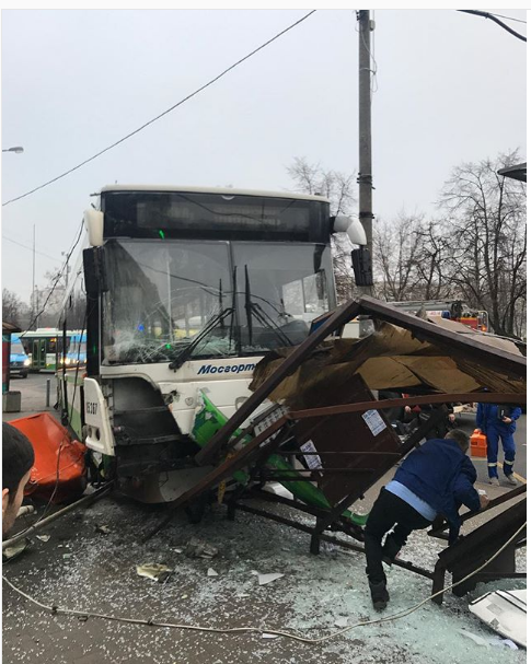 В столице снова произошла крупная авария с участием пассажирского автобуса. Утром 29 декабря около 9:40 в районе д. 37 на ул. Сходненская автобус наехал на остановку общественного транспорта.