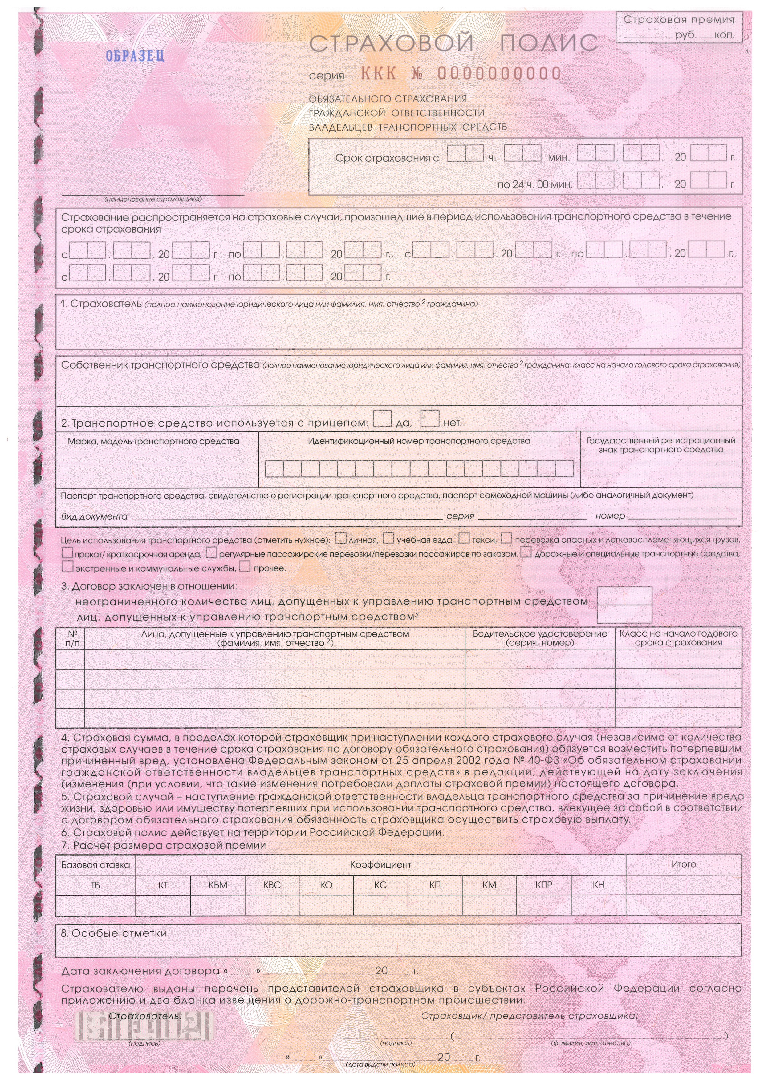 Кроме того отмечается, что на новом бланке полиса ОСАГО будет также отражаться подробный расчет размера страховой премии и класс, присвоенный каждому лицу, допущенному к управлению транспортным средством. А на оборотной стороне полиса могут указываться данные по другим договорам добровольного страхования, если таковые имеются.