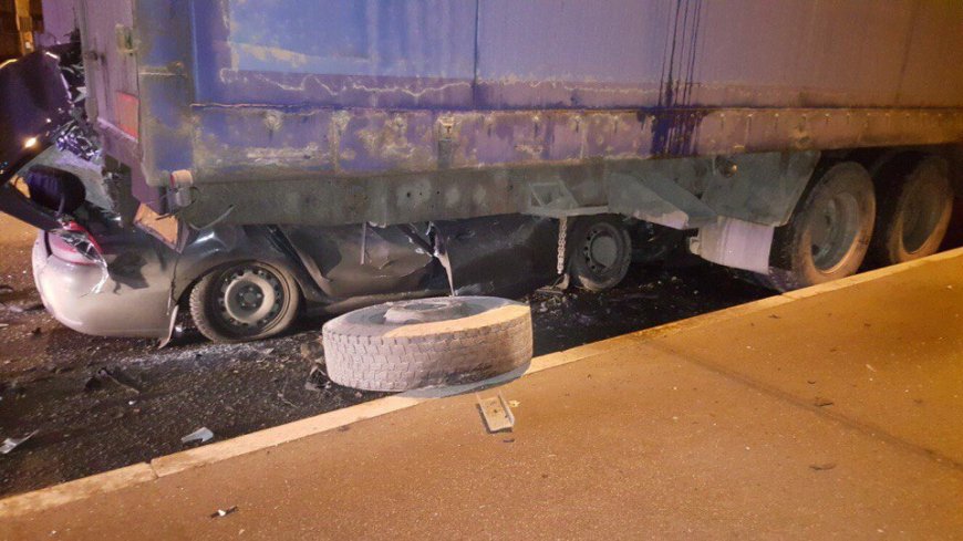 В Петербурге иномарка влетела под грузовик: водитель погиб