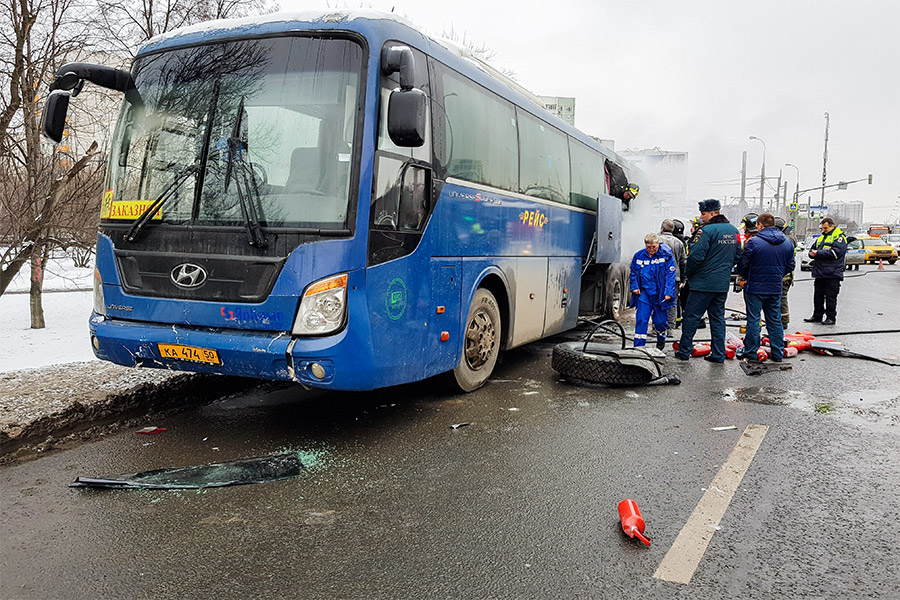Автобус, перевозящий детей, загорелся накануне, 14 января, на Волгоградском проспекте в районе дома 187 в Москве.