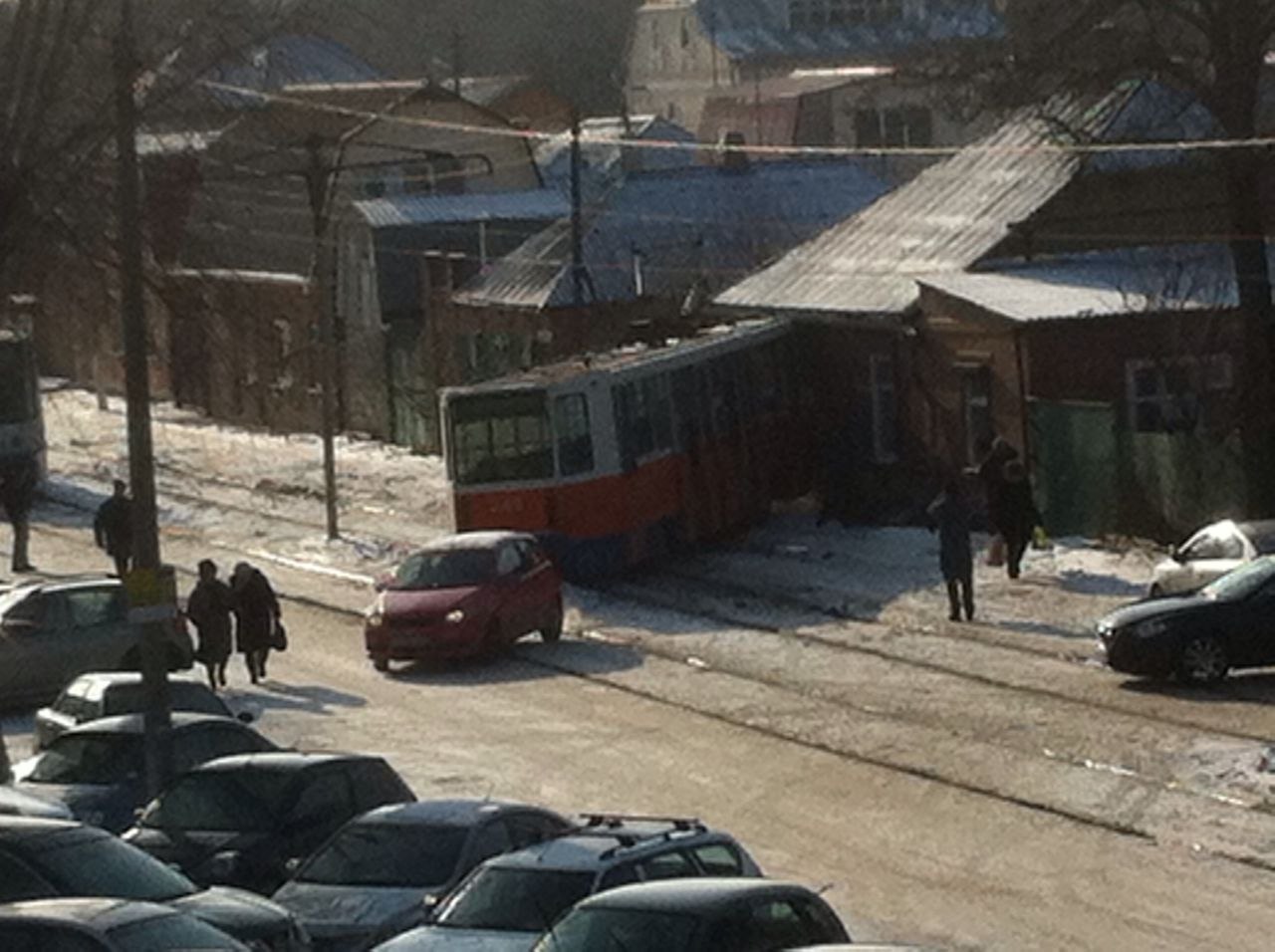 В Таганроге трамвай сошел с рельсов и протаранил дом