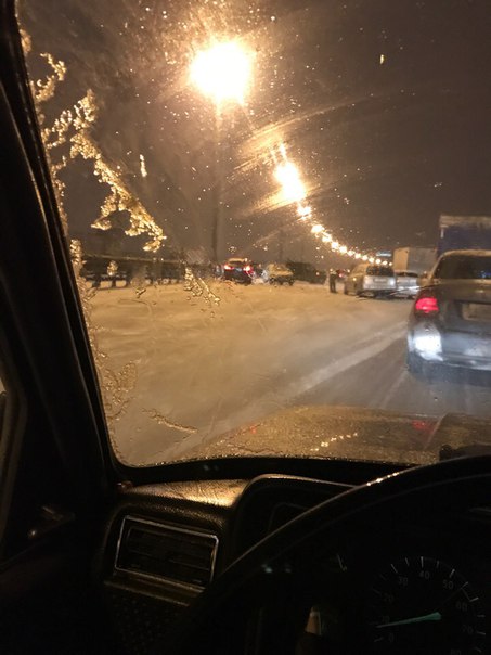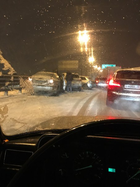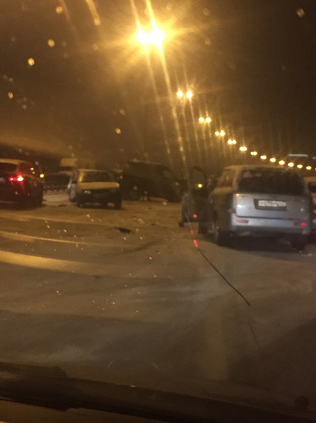 Массовая авария произошла вечером 29 января на 67-м км КАД между съездом с Таллинского шоссе и съездом на Дачный.