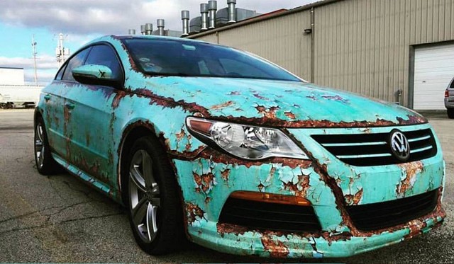 Да, наверное в повседневном режиме ездить на "кожаной" машине многим покажется излишне экстравагантно. А как вам вариант с пленкой, имитирующей ржавчину? Такой автомобиль будет выглядеть как только что угнанный со свалки раритет, но собственно почему бы и не поудивлять друзей и коллег по дороге? Впрочем, это вполне может отпугнуть и потенциальных угонщиков - кому нужен ржавый драндулет?
