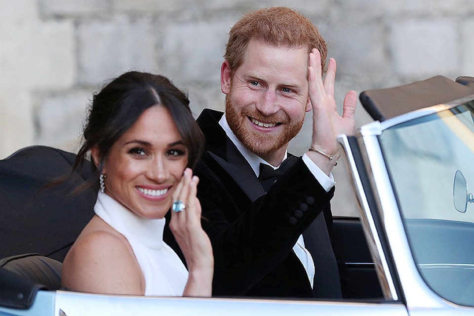 Кольцо Меган Маркл надела уже после свадебной церемонии. Оно попало в кадр фотографам, которые снимали, как молодожены на подаренном "Ягуаре" покидали часовню Святого Георгия Виндзорского замка и отправлялись на вечеринку, которую устроил отец Гарри, принц Чарльз.