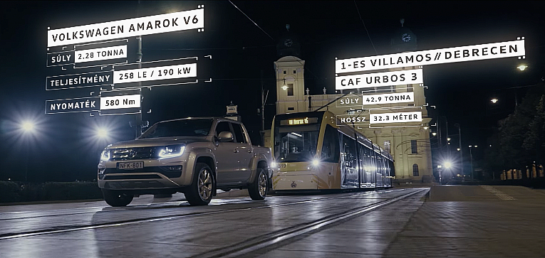 Volkswagen Hungary, венгерское подразделение немецкого автопроизводителя, отметилось промо-роликом среднеразмерного пикапа Volkswagen Amarok, в котором показано, как автомобиль тянет по улицам города трамвай. Хотя скорей это промо двигателя Volkswagen TDI 3.0, который выпускается на венгерском заводе компании.