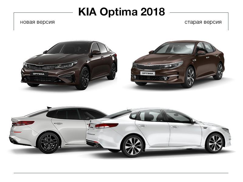 Новая Optima получила те же двигатели и КПП, не изменились и габариты автомобиля. Основные изменения коснулись дизайна передней части автомобиля и немного салона.