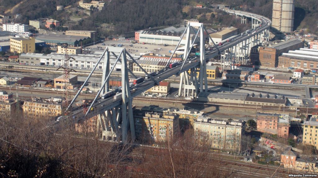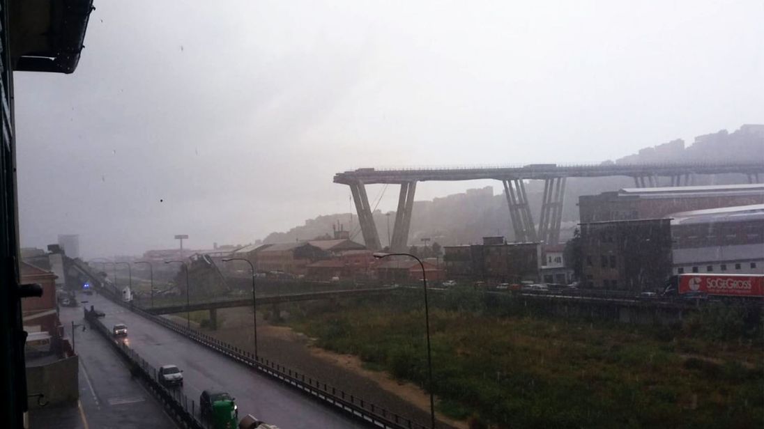 В Италии обрушился автомобильный мост, по которому проходит автомагистраль А10. Мост находится недалеко от Генуи, очевидцы события уже опубликовали множество фото и видео, подтверждающих событие.