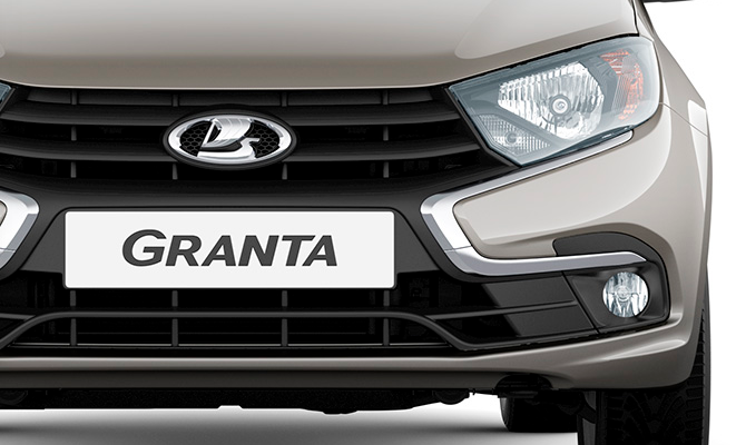 Все версии автомобиля, получив новый дизайн, получили и общие черты, что делает «Гранту» узнаваемой. Речь в первую очередь о передней части кузова. Передние фары на темной глянцевой подложке вписаны в верхнюю часть радиаторной решетки, а в качестве элемента фирменной X-графики использованы хромированные вставки в форме бумерангов. Бросается в глаза и увеличенный логотип бренда, размещенный по центру радиаторной решетки.