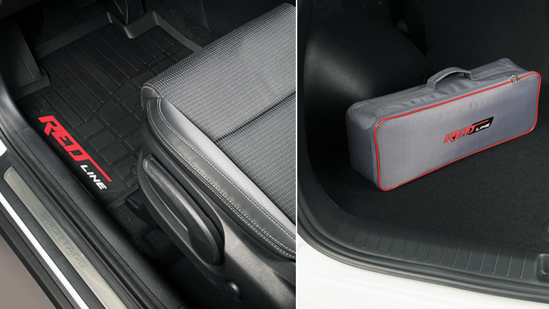 В таком исполнении делаются некоторые комплектации моделей Ceed, Rio, Rio X-Line, Soul, Optima и Sportage. Отличительная особенность машин — логотипы Red Line на кузовных панелях и ковриках в салоне.